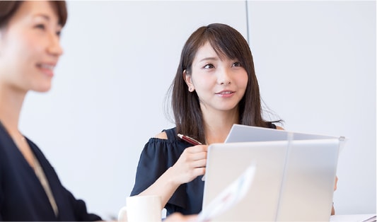 キャリアセンターでは、国家資格保持者のキャリアコンサルタントによる個別相談が受けられます。来校だけでなくオンラインでの相談にも対応しています。受講中から受講修了後も利用できます。