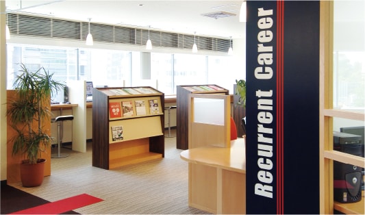 リカレントには、キャリアセンターが併設されており、個別のキャリアカウンセリングやリカレント会員向けの求人票の掲示、就転職に役立つスキルアップセミナーなどの就業支援を行っています。